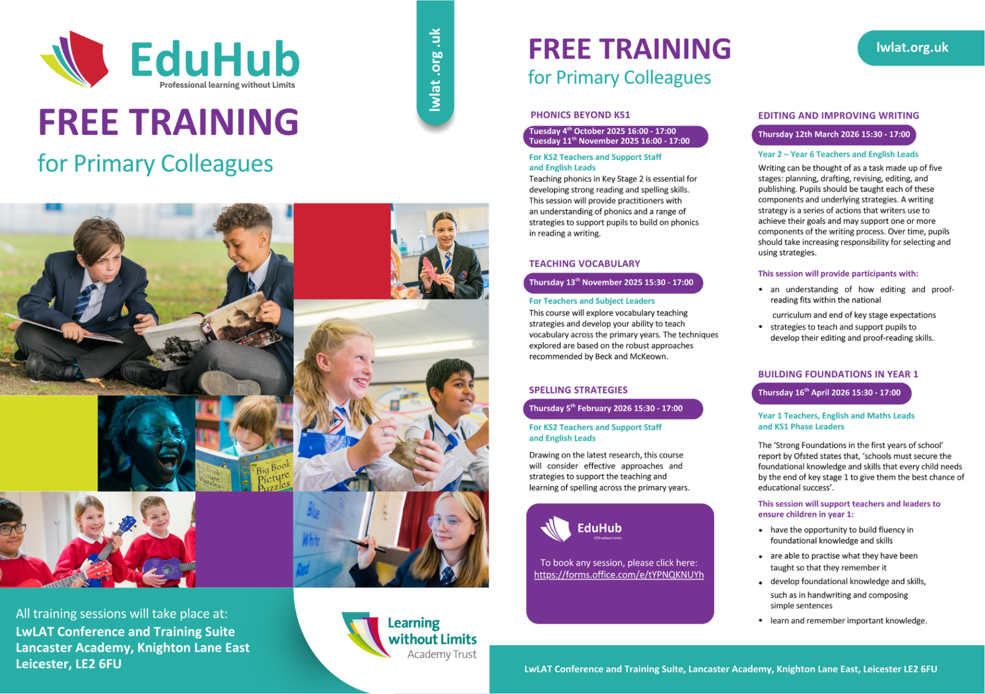 EduHub is the training and development platform from Learning Without Limits Academy Trust, created to deliver professional learning without limits.