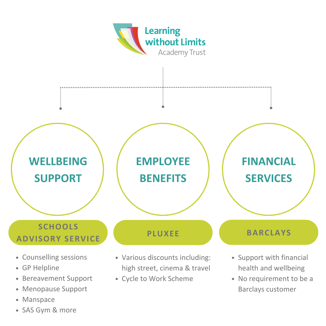 All Learning without Limits Academy Trust employees have access to a range of benefits, wellbeing support, and financial services.