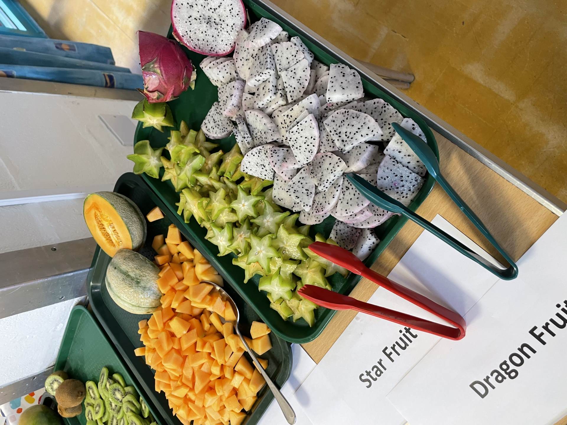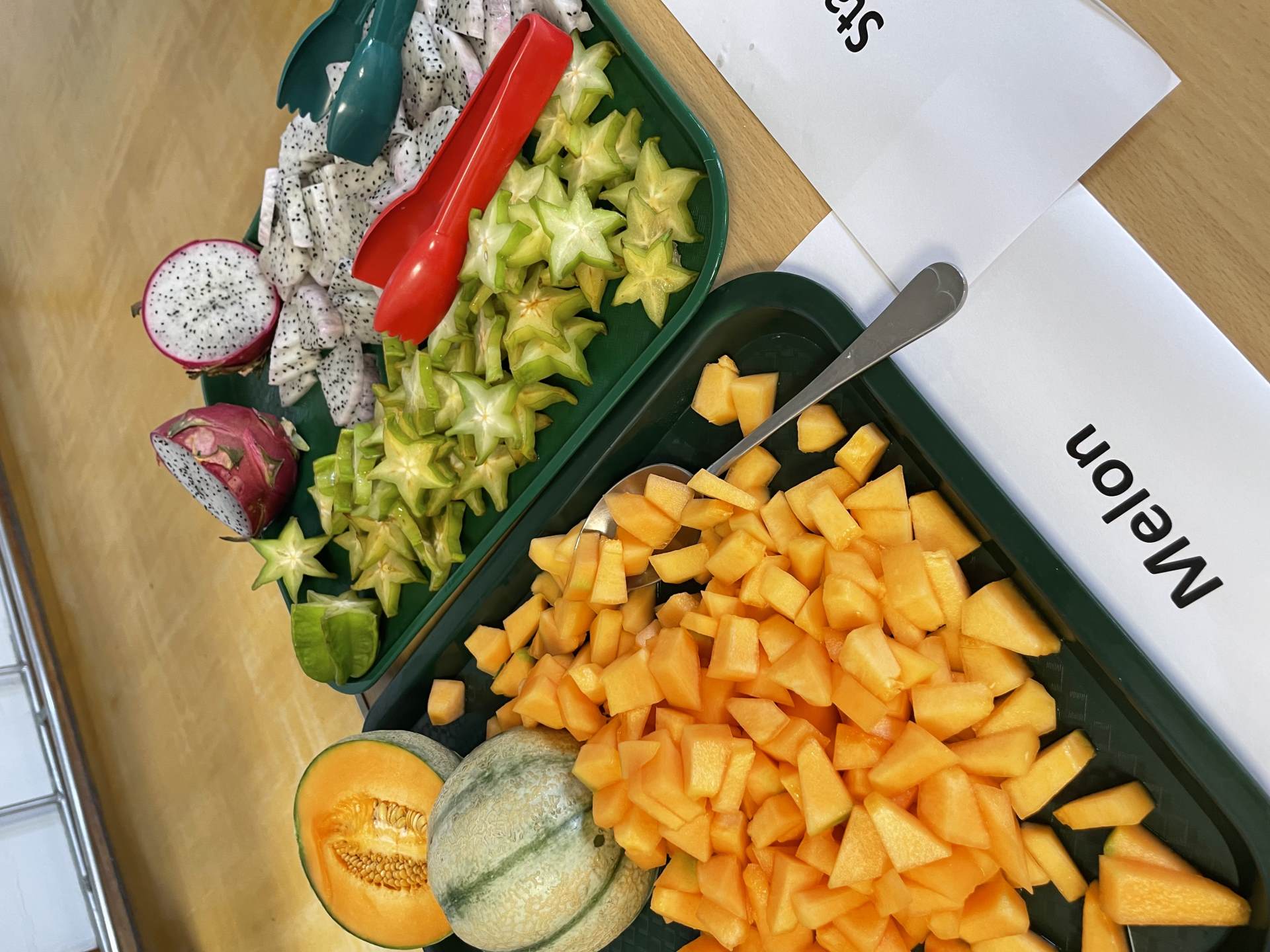 Our Heatherbrook pupils tried a selection of different fruits today: dragon fruit, kiwi, melon, star fruit and mango.