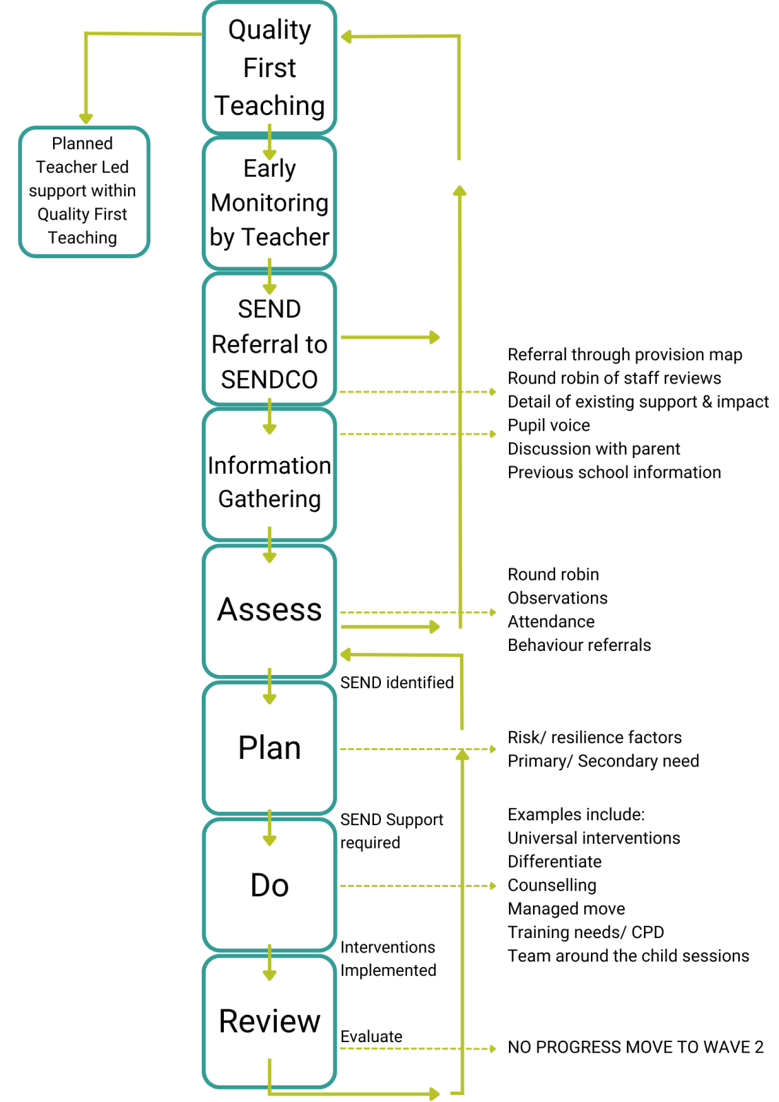 All Trust Academies use a 3 wave approach to meeting the needs of its SEND students.